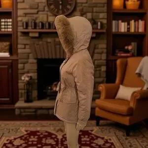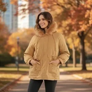 Puffit Faux Fur Mid-Length Hooded Drawstring Parka. NWT