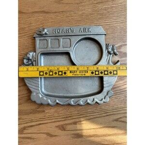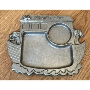 Vintage Pewter Noahs Ark Mug & Plate Childss Dinnerware Set York Metal 1977