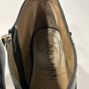 Anyi Lu Black Leather Ankle Booties Dressy Heeled 37.5 Made in Italy