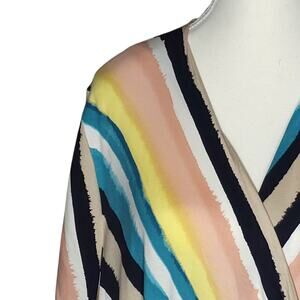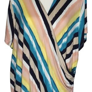 Lane Bryant Top Womens 22/24 V-Neck Short Sleeve Stripe Illusion Collection