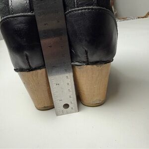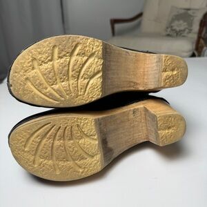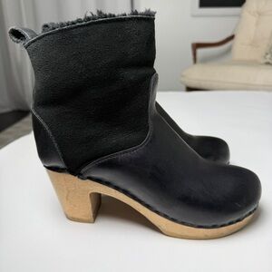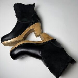 No. 6 Pull-on Shearling Wood Clog Boots on Mid Heel Black Suede Women's 39 8.5