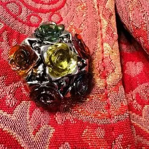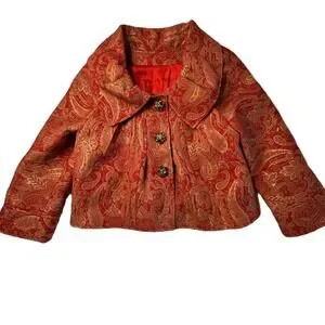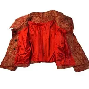 Custom Handmade Red Gold Paisley Brocade Jacket Women's Size Small Blazer Wide Collar