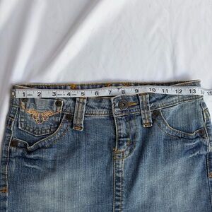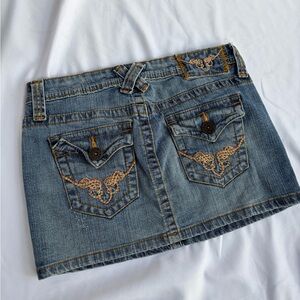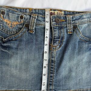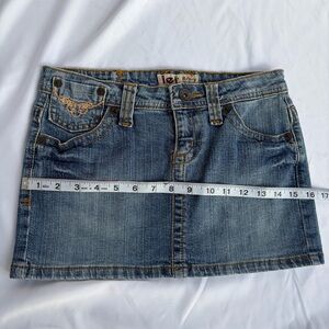 Vintage l.e.i Ashley Ultra Low Rise Denim Mini Skirt Size 0 Y2K