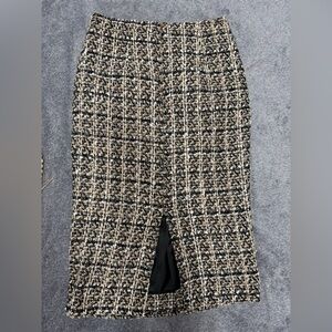 Elevate your wardrobe with this chic black and white tweed pencil skirt. Perfect for both professional and casual settings, it offers a timeless style.