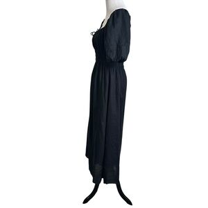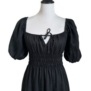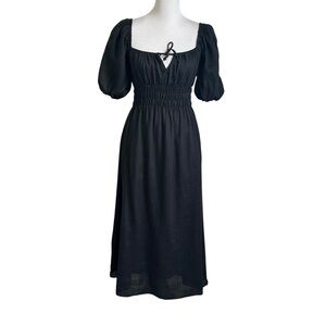 FAITHFULL THE BRAND Maurelle Linen Midi Dress Sz 4 Black Puff Sleeve Lined