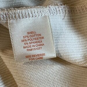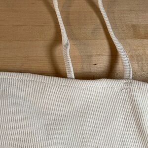 Women’s 4X one shoulder cream crop top tortoise shell colored accent by LOVEFOOL. This stretchy ribbed texture cream top is 57% cotton 38% polyester and 5 % spandex. It also has a thinner support strap for alternate shoulder.