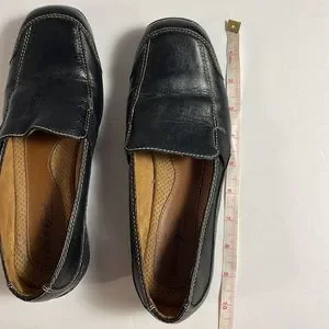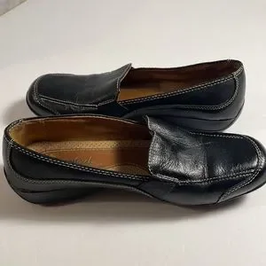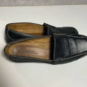 In excellent preowned condition. Beautiful soft leather slip on loafers from Natural Sole by Naturalizer. Comfortable padded footbed. Love the contrast stitching!