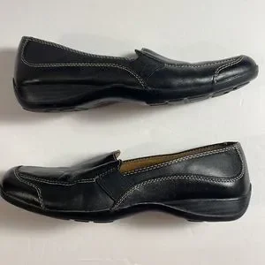 Naturalizer Natural Sole Black Leather Slip On Loafer Shoe Contrast Stitching 7M