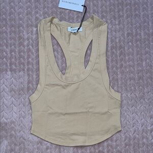 WeWoreWhat Womens Beige Cotton Jersey Crop Scooped Tank