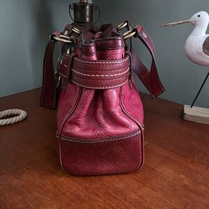 Coach 10226 Hamptons Clip Signature Embossed Red Leather Satchel Y2K Vintage