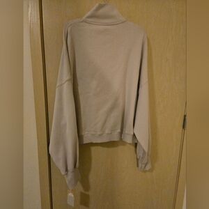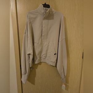 Brand new half-zip sweater/sweatshirt by popflex. Also has a button closure. Features kangaroo pockets with logo on the front. Long sleeves. Partial tags attached. Retails for $89.