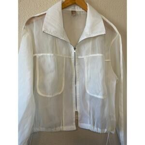 Dzay/ Less White Sheer Mesh Zip Up Draw String Windbreaker Jacket Street XL