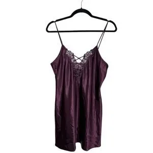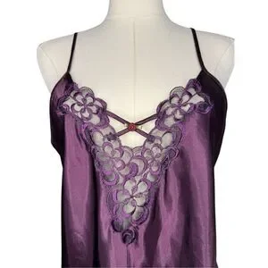 Vtg California Dynasty Women’s Small Satin Slip Dress Purple Lace Lingerie