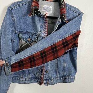 Jordache Original 90's Denim Jacket Plaid Patchwork Custom Red Stitching Size M
