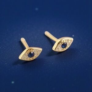 925 Sterling Silver Gold Evil Eye Stud Earrings