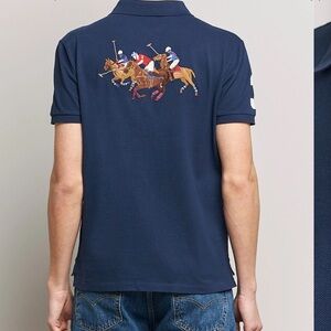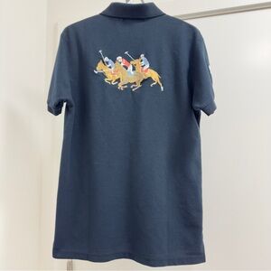 Worn once and washed once . A bit small as this film fit . embroidered logo at the chast and rear signature Polo Pony motif number 3 patch to the sleeve short front button fastening short sleeves, short side slits straight hem