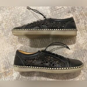 Biza Athena Leather Cut Out Black Lace Up Shoes Women's Size 39 US 8- 8.5