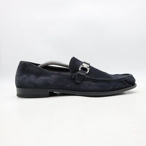 Salvatore Ferragamo Adam Dark Navy Blue Suede Loafers Men's 12 E Classic Shoes