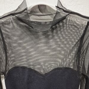 Free People Light up Layering Mesh Turtleneck Long Sleeve Black Shirt