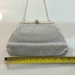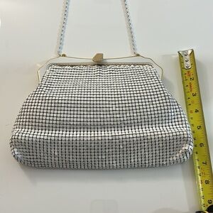 This is a beautiful purse perfect for a wedding or a special occasion! Appears to be vintage & small metal white squares. Some minor wear. See measurements.