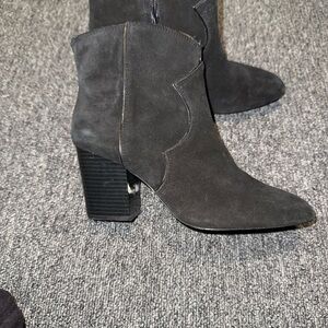 Zara Black Suede Cowboy Ankle Boots