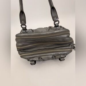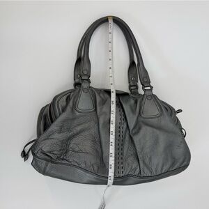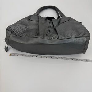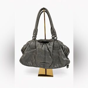 Cole Haan Silver Pebbled Leather Satchel Shoulder Bag Double Handle Zip Top