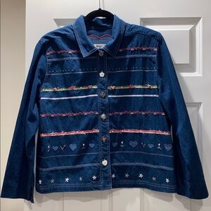 Vintage Koret Embellished Heart Denim Jacket size L