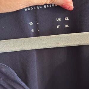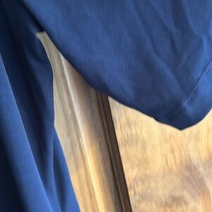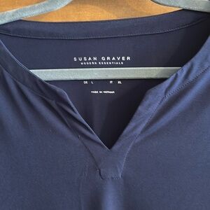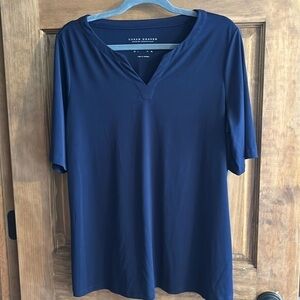 LIKE NEW Susan Graver Liquid Knit short sleeve split neck top Navy L