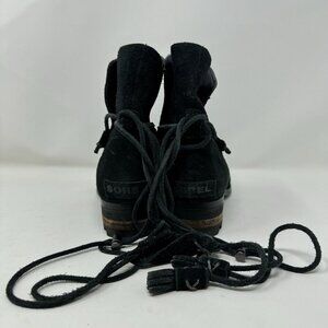 Sorel Black Farah Suede Booties Wrap Tasseled Western Ankle Slip On Boot Boho 7