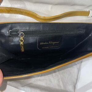 Elevate your style with this elegant Salvatore Ferragamo women's bag. Featuring a chic gray and gold design, this bag is perfect for any occasion. Crafted with quality patent leather and attention to detail, it offers both functionality and fashion.