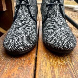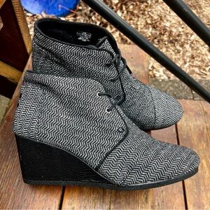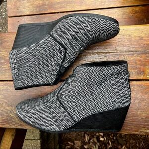 TOMS HERRINGBONE DESERT TWEED BLACK WEDGE BOOTIES SIZE 11