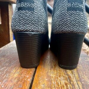 DETAILS: Step out in style with these Toms Desert Tweed herringbone black and white wedge ankle booties. Perfect for any occasion.