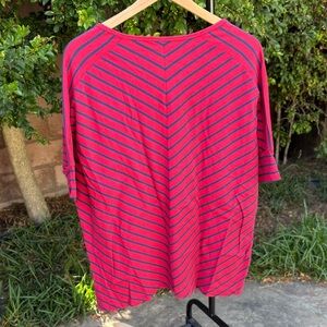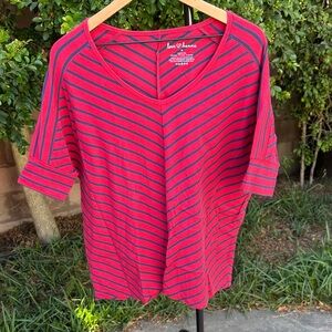 Hanna Andersson Medium Red Blue Striped Dolman Sleeve V Neck Tee