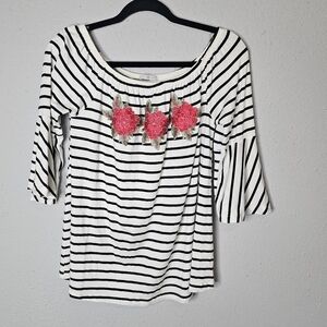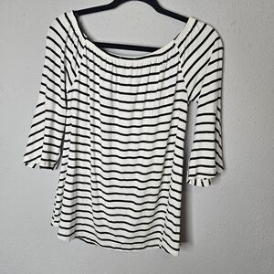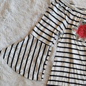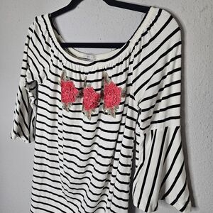 West Kei Red Black White Floral 1/2 Bell Sleeves Tunic Shirt Blouse Size L Large