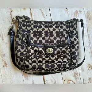 COACH black Penelope shoulder bag, Y2K canvas monogram logo purse F19232 casual