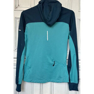 Nike Running Women’s (L) 1/4 Zip Pull Over Dri Fit Teal/Light Green Cap Hoodie.