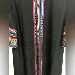 World Market Bohemian Embroidered Long Open Front Kimono Duster