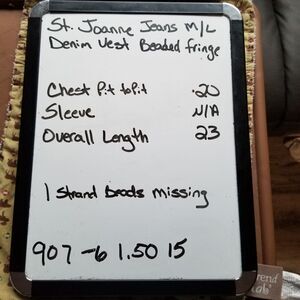 Vtg St. Joanne M/L Top Vest Blue Denim Leopard Beaded Fringe Boho Festival FLAW
