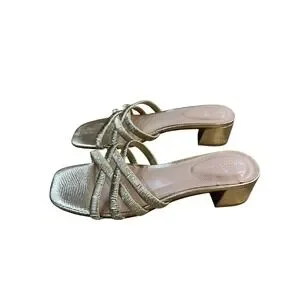 Bandolino Gold Metallic Strappy Square Toe Block Heel Mules Sandals 9.5M