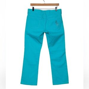 Ralph Lauren Black Label turquoise Polo Logo capri Jeans Large Crystal Pony 27 6