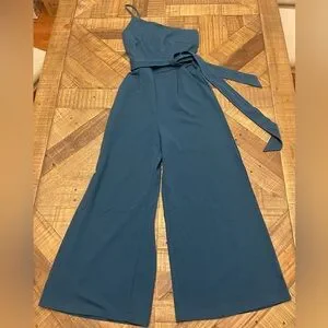 Elevate your wardrobe with this chic teal one-shoulder jumpsuit. Perfect for any occasion, it offers a stylish and comfortable fit.