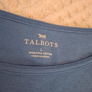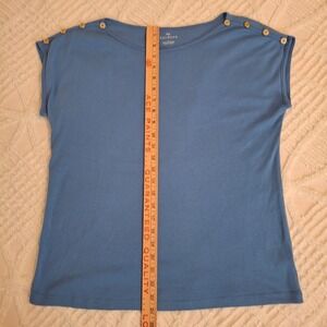 Talbots Large Sleeveless T-Shirt Blue Pima Cotton Button Shoulder Muscle Tee