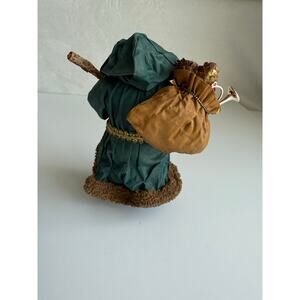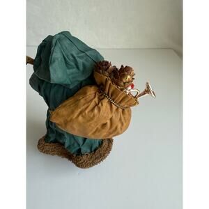 Vintage Paper Mache Santa Green Hooded Robe Toy Sack Old World Christmas 6.5"