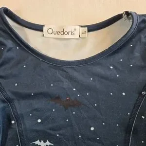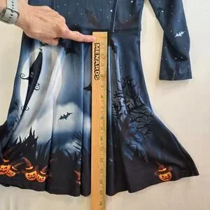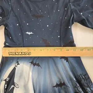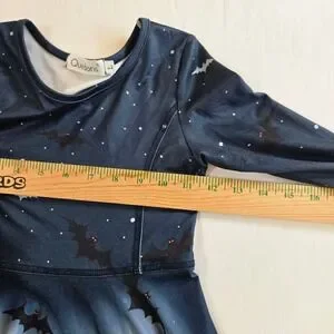Keywords: Halloween dress, girls dress, kids dress, costume dress, bat print dress, moon print dress, spooky dress, long sleeve dress, size L, Quedoris, party dress, holiday dress, seasonal dress
