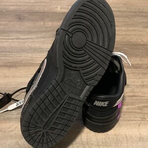 Stylish black and silver women's sneakers with a touch of purple. Perfect for casual outings and everyday wear.
