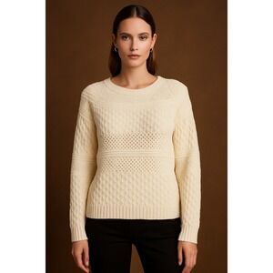 Talbots Petite Cable-Knit Sweater Textured Ivory Knit Cottagecore Boho *Petite