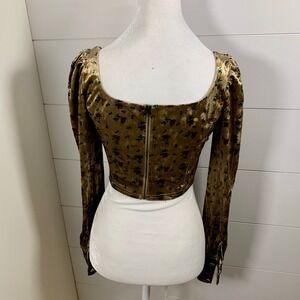 Keywords: Cider, Floral Velvet, Crop Top, Long Sleeve, Square Neck, Party Blouse, Size S, Gold, Brown, Vintage Inspired, Elegant, Occasion Wear, Blouse, Velvet, Boho, Romantic, Cottagecore