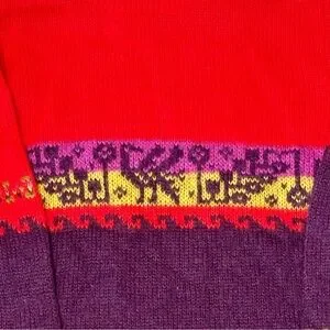 United Colors Of Benetton Red and Purple Turtleneck Sweater Cabincore 90s Vibes