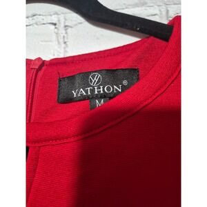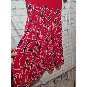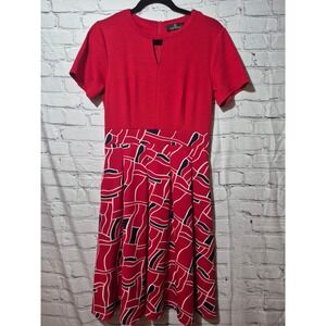 BOLD RETRO POP RED Yathon Geometric Fit and Flare Dress Keyhole Pockets SIZE M