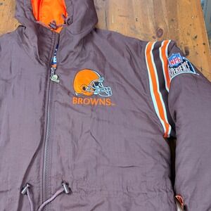 Vintage 90's Pro Player Cleveland Browns NFL Hooded Parka Jacket Mens Medium